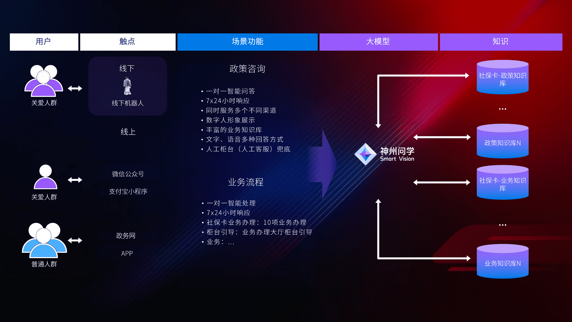 在服务大厅部署客服机器人,,在线上应用和小程序配置客服数字人,,,,724小时为群众解答常规问题,,客服机器人无法处理的,,,,转现场人工处理。。